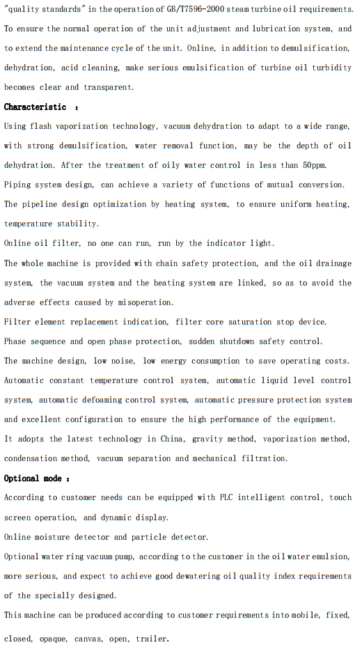 TY系列透平油真空濾油機(jī)(汽輪機(jī)油在線凈化裝置)