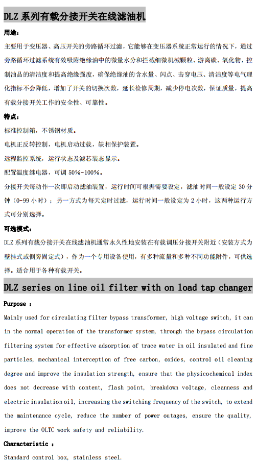 DLZ系列有載分接開關(guān)在線濾油機(jī)